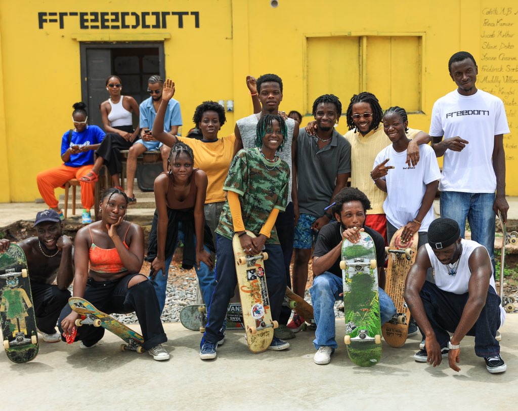 En plus d'aller visiter le tout premier skatepark ghanéen, inauguré au mois de décembre 2021 ; via Twitter, on aperçoit l'artiste en train de jouer au foot avec les jeunes dans la rue.