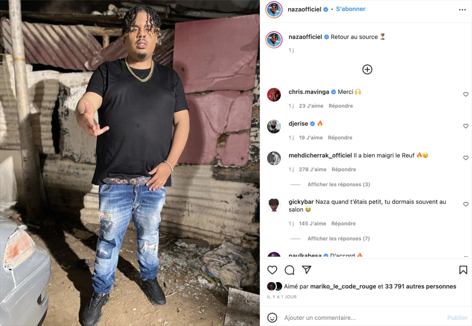 Le rappeur actuellement en séjour en Afrique a publié une photo de lui dans laquelle on sent clairement qu'il a perdu du poids, son ventre s'est rétréci ; "gros bébé ", il ne l'est plus.